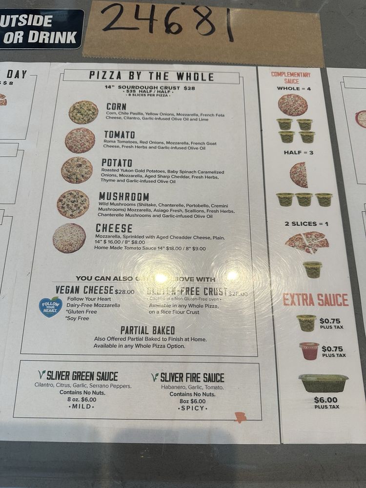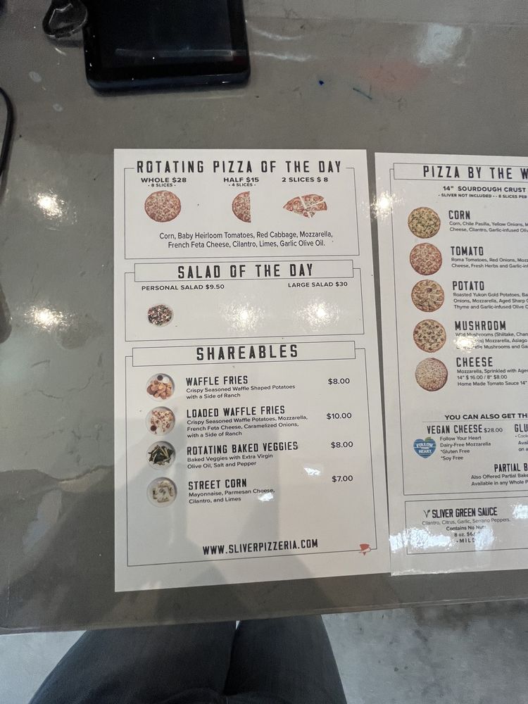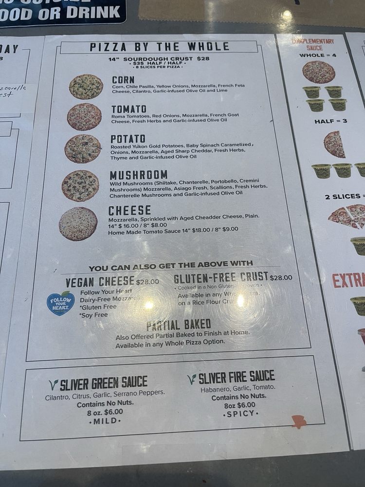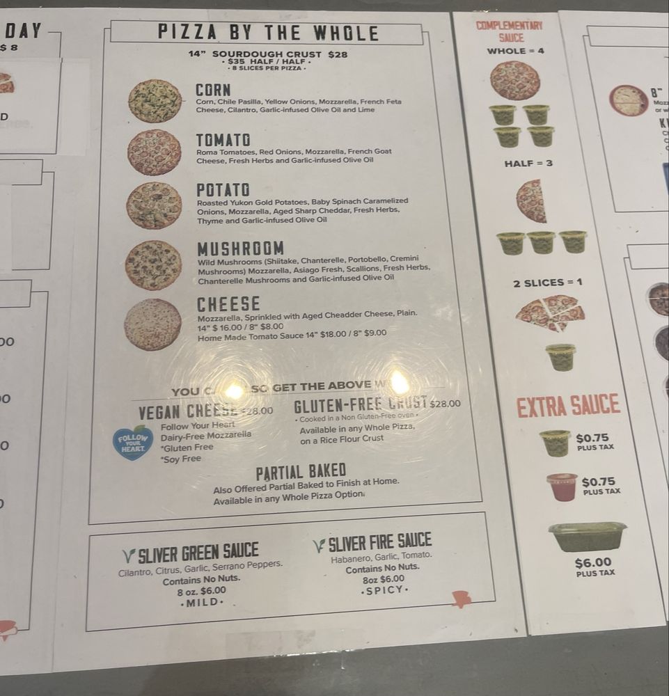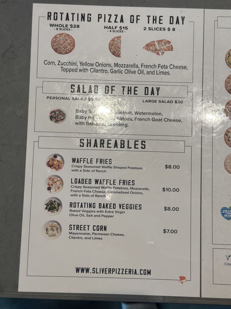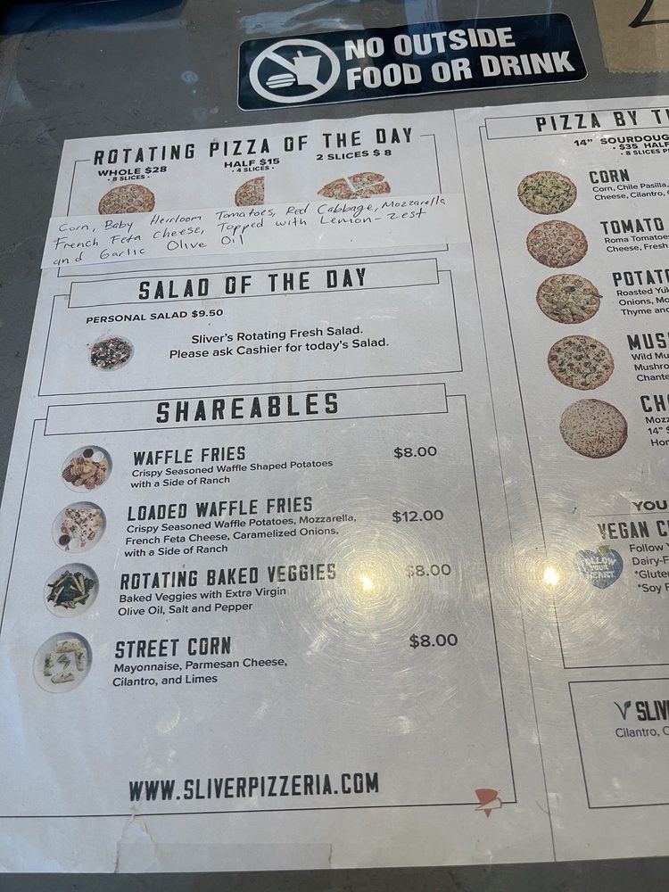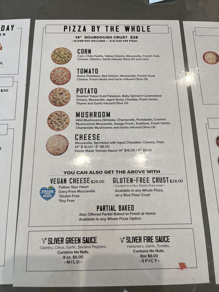 Sliver Pizzeria - Fremont Menu